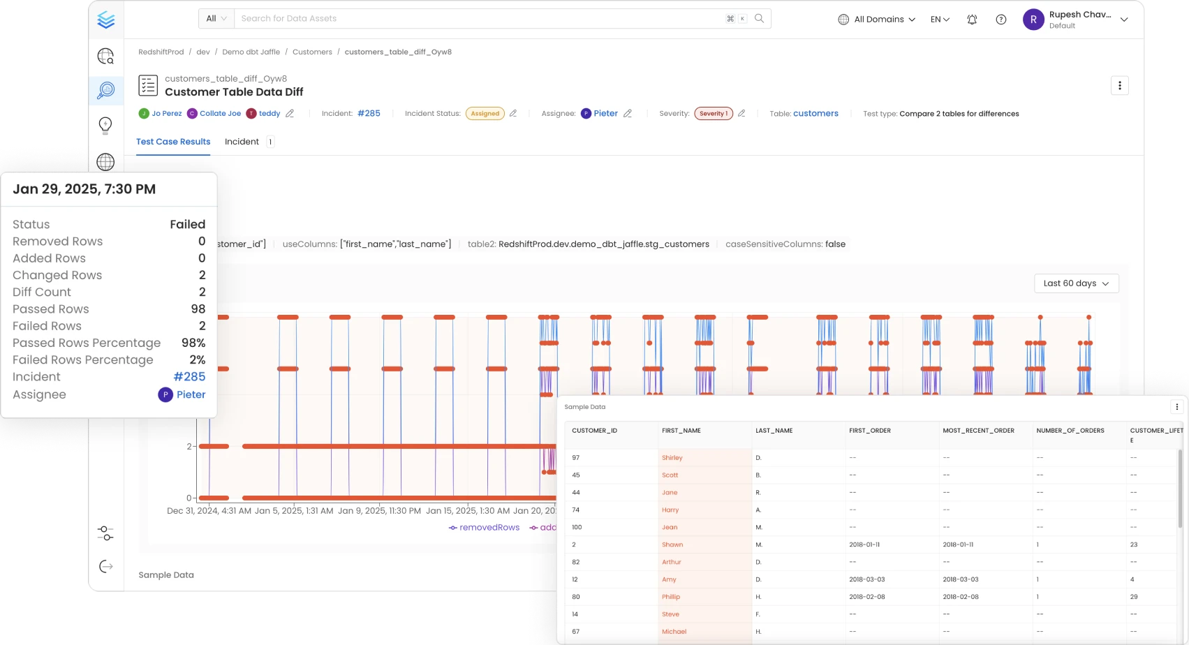 See how quality results change over time, or from new data pipeline deployments